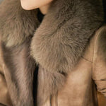 Luksuslik Lambanahast Mantel Naistele ühendab mugavuse, stiili ja soojust. Pehme nahk krae lisab hubasust, samas kui lambanaha materjal tagab suurepärase isolatsiooni külmematel päevadel.