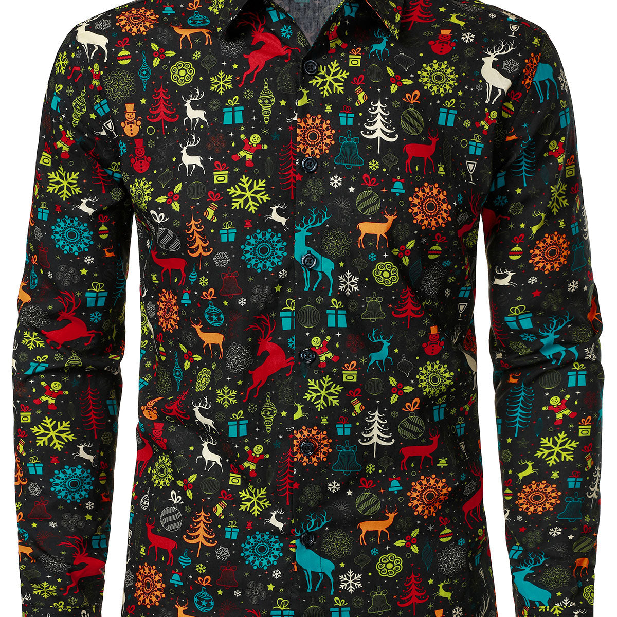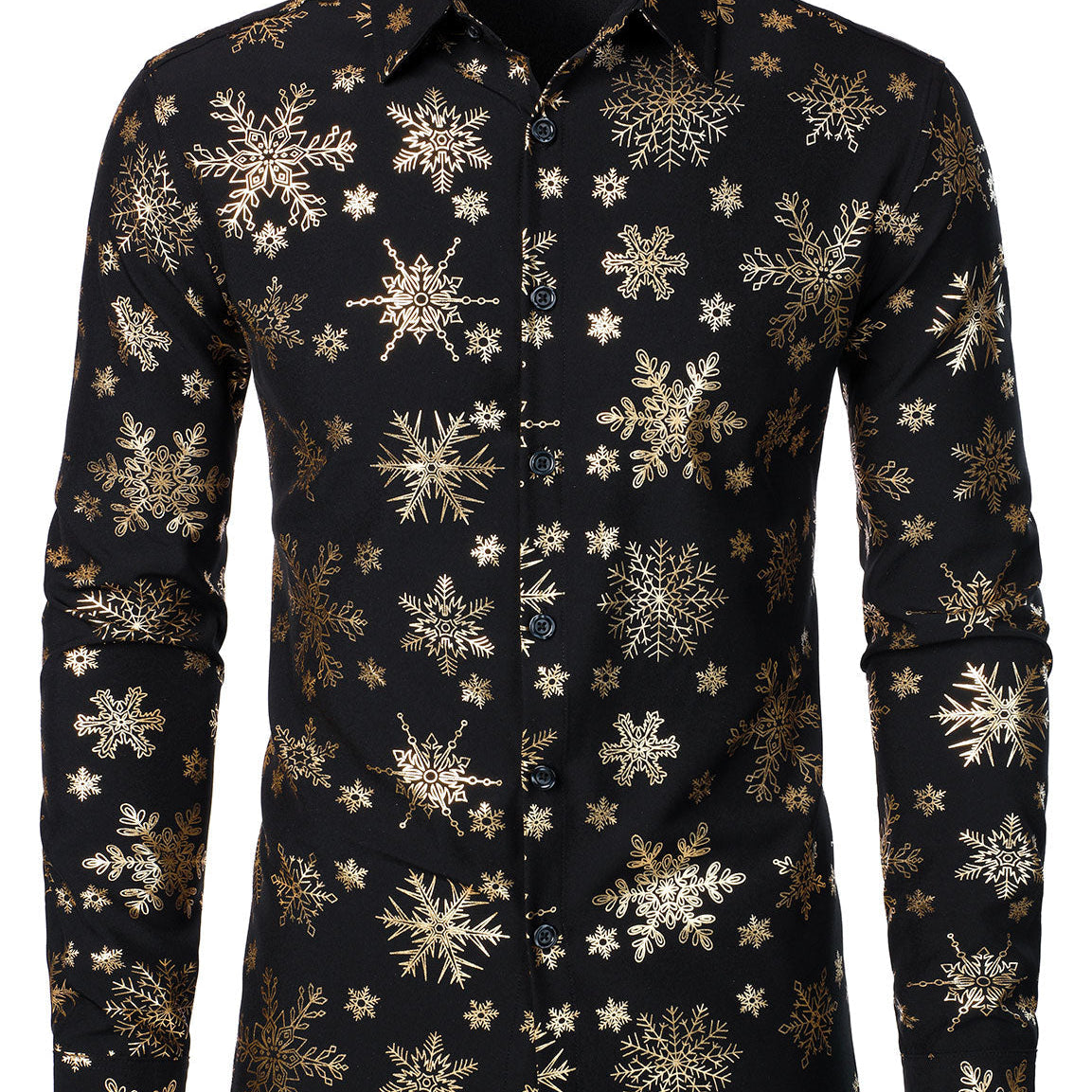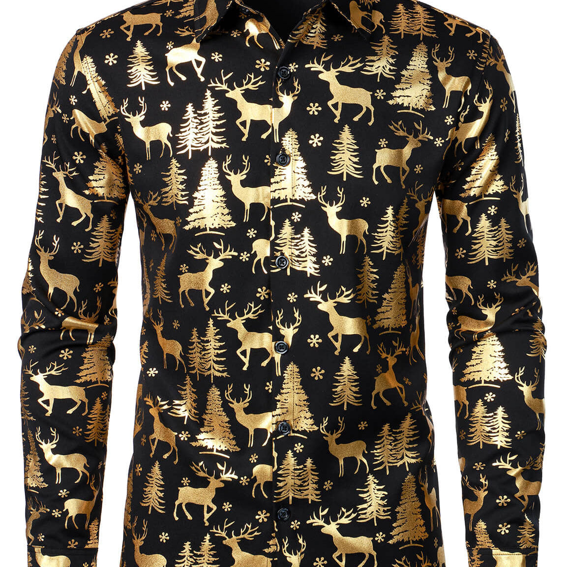 Meeste Kuld Jõulutrükk Regulaarne Istuvus Must Pikakä sleeves Särk