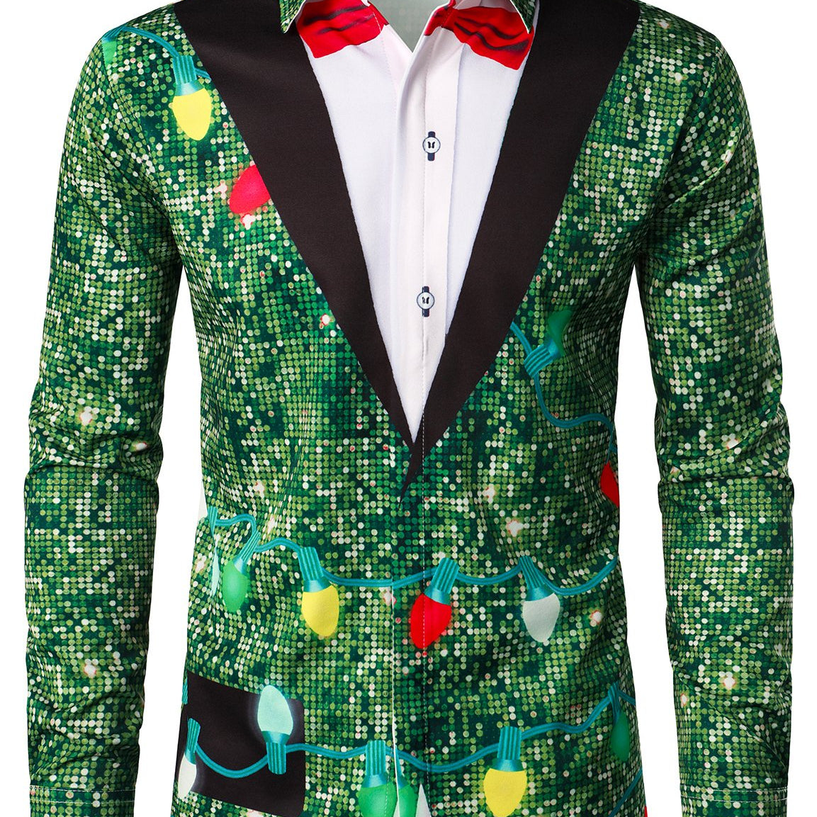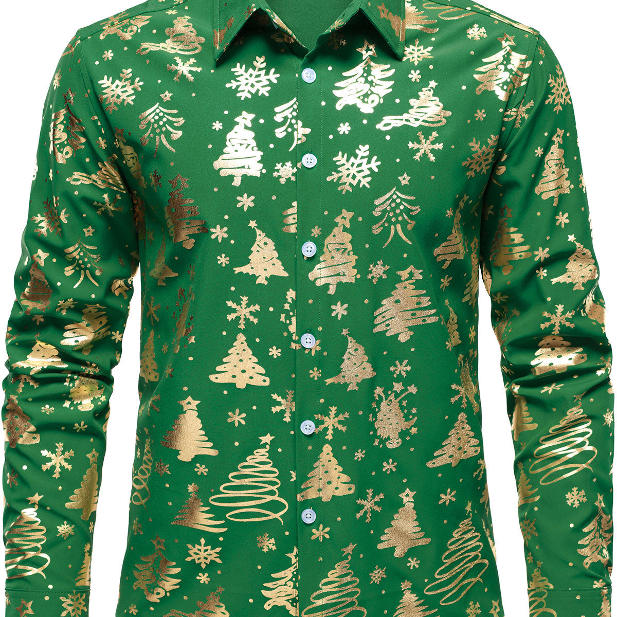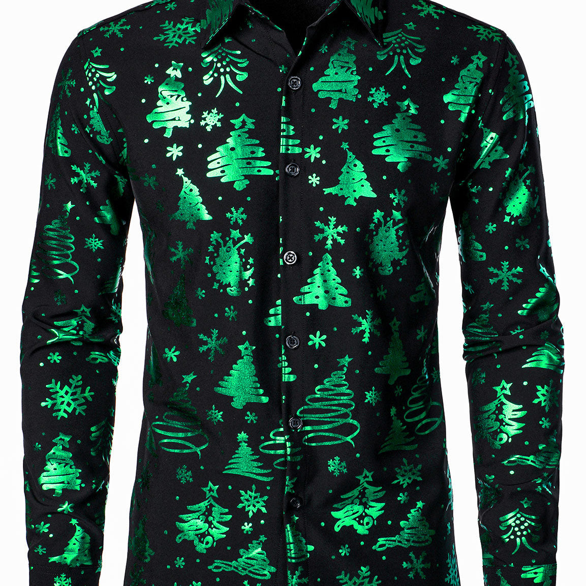 Meeste Jõulupuu Naljakas Riietus Jõuluteemaline Topp Puhkus Roheline Nööbiga Pikad Varrukad Särk