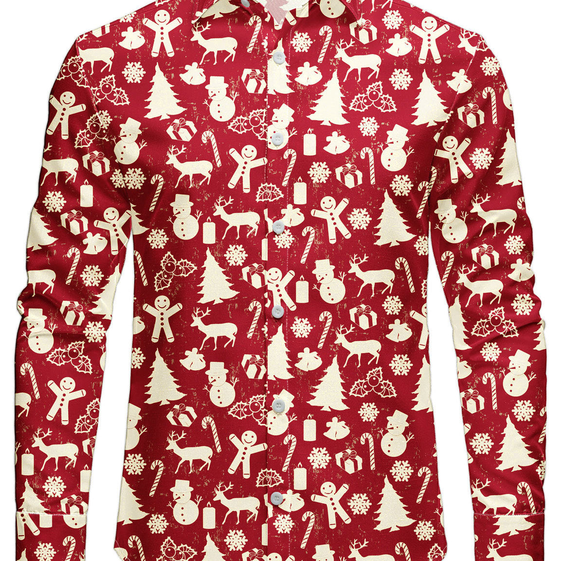 Meeste Jõuluvana Põhjapõder Punane Festiivne Prindiga Pikad Varrukad Särk