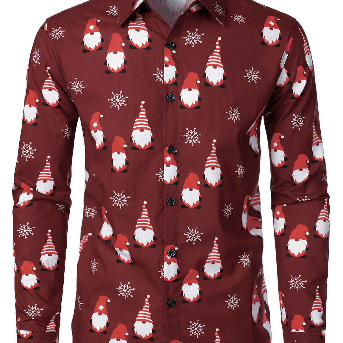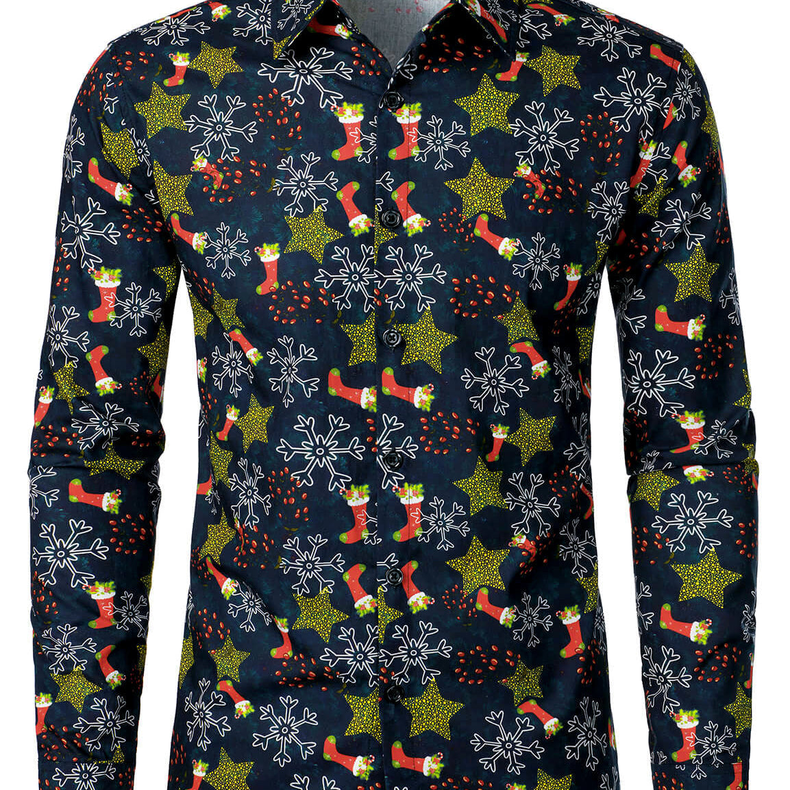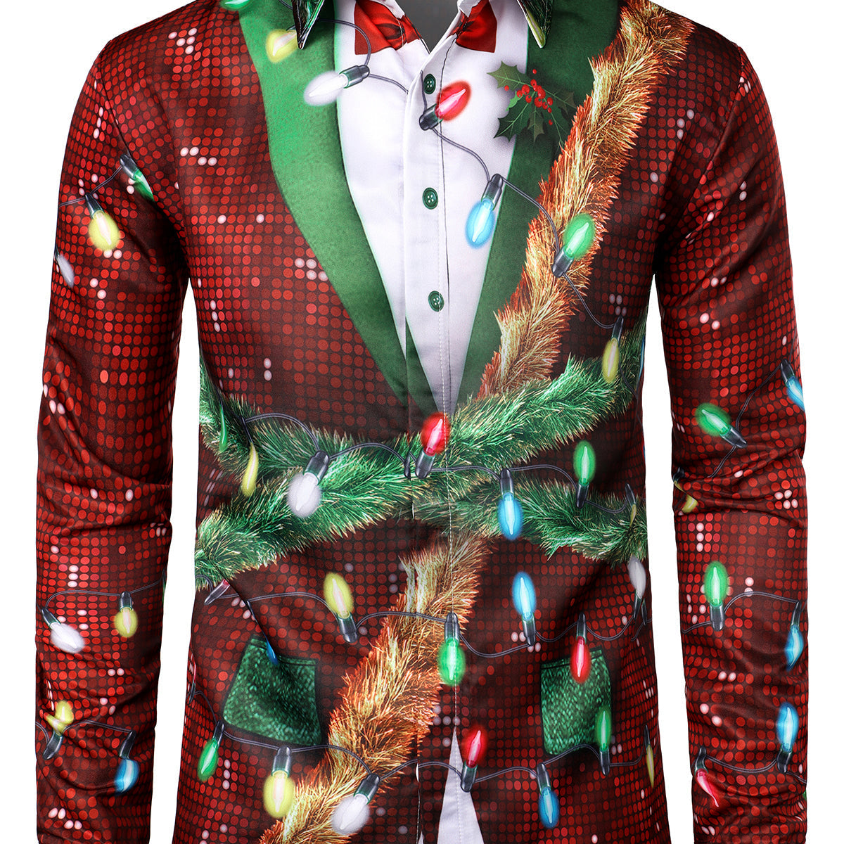 Meeste jõuluteemaline lõbus riietus, puhkuse nööp-püksi pikkade varrukatega särk