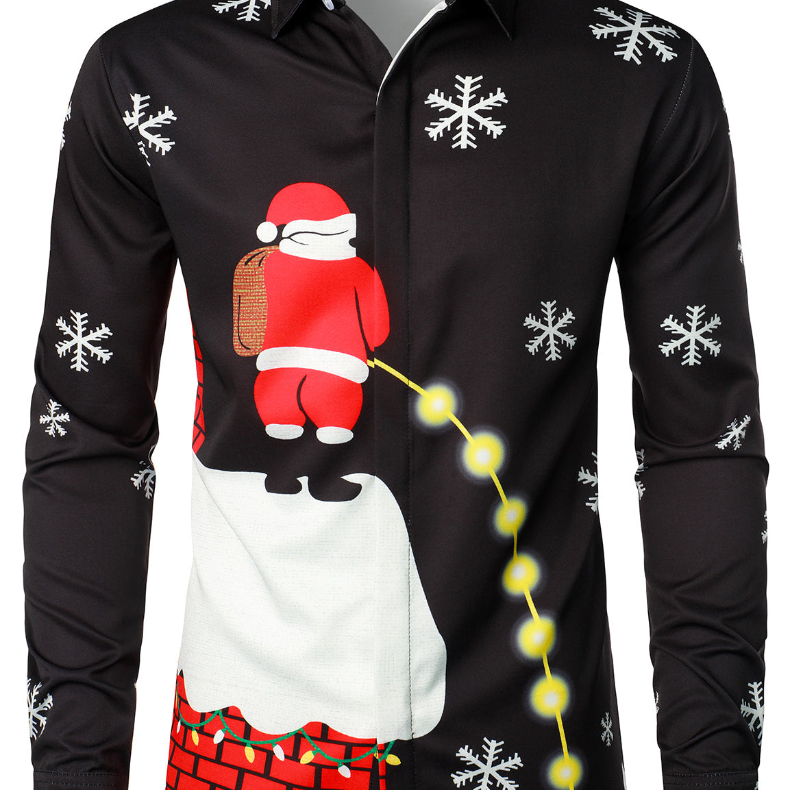 Meeste Jõuluvana Nupp-Up Must Lõbus Pikkade Varrukatega Särk