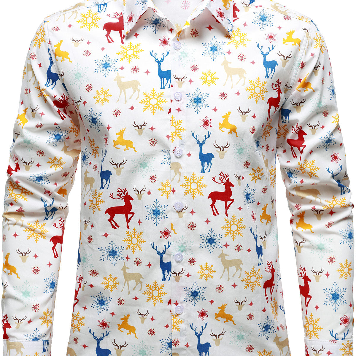 Meeste Jõuluvana Põhjapõdra Festiivne Prinditud Jõulupüha Valge Pikad Varrukad Särk