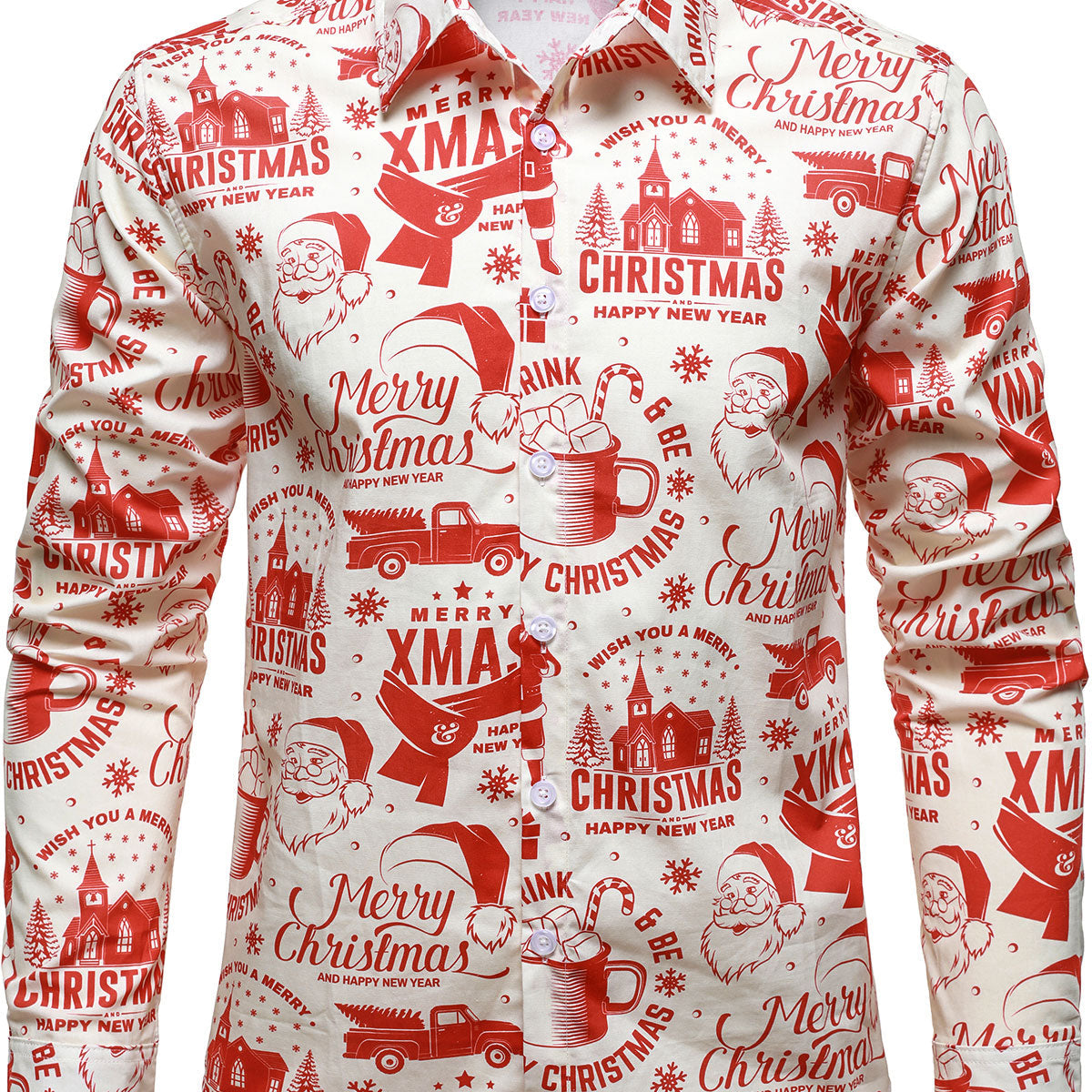 Meeste Vintage Jõulupukki Prindiga Puhkepäeva Pikad Varrukad Särk