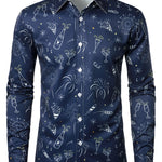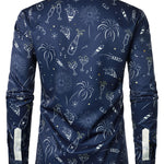 Meeste Ilutulestik Puhkus Uusaasta Peo Nööbiga Sinine Pikakä sleeves Särk