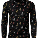 Meeste Jõulupuu Põder Prindiga Hingav Must Pikakä sleeves Särk