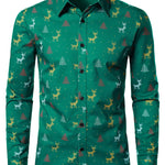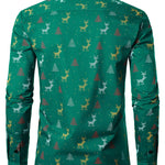 Meeste Jõulupuu Põder Prindiga Hingav Roheline Pikakä sleeves Särk