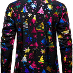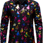Meeste Kuld Jõulutrükk Regulaarne Istuvus Must Pikakä sleeves Särk