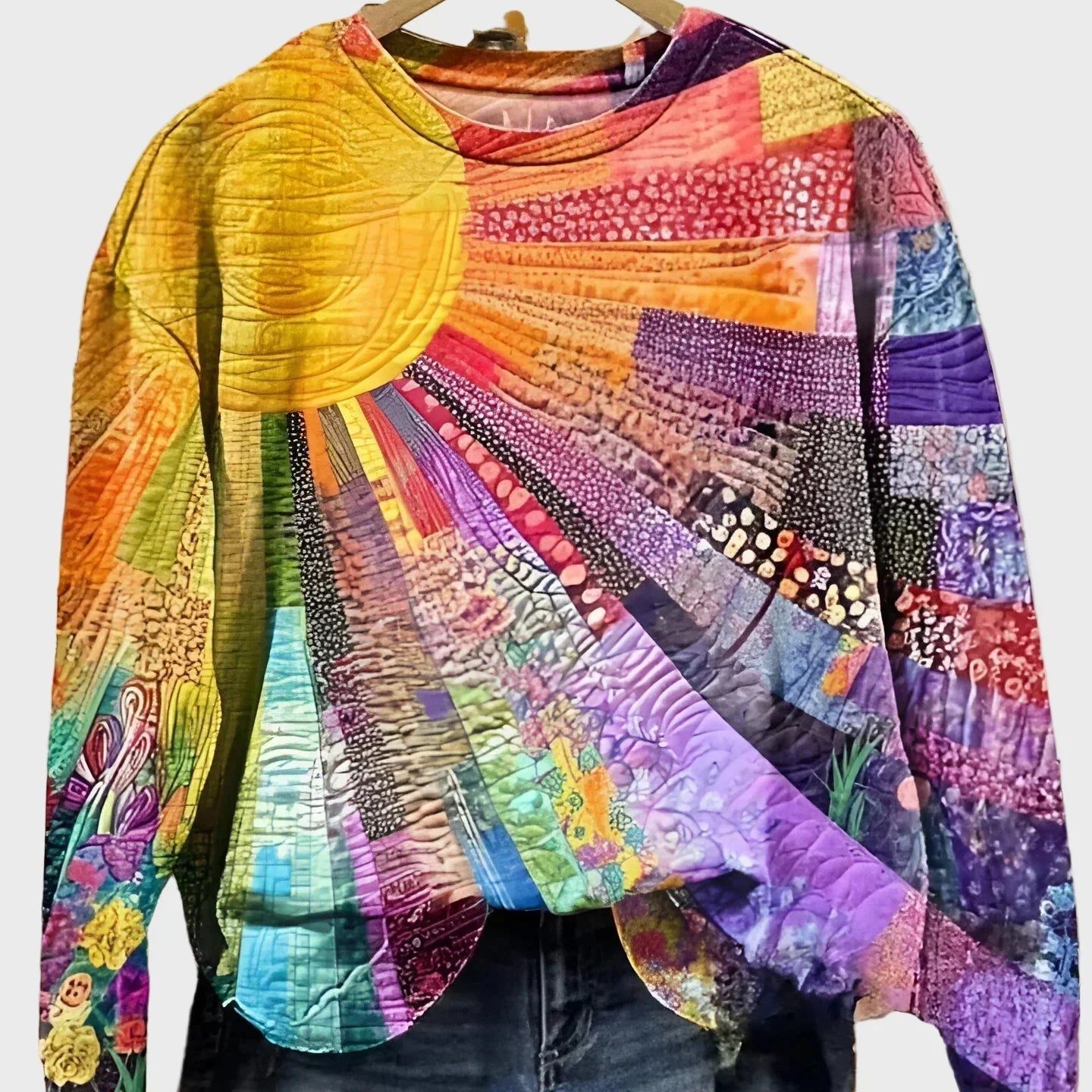 Kootud dressipluus päikesekiirte mustriga