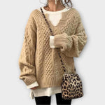 See naiste kootud kampsun on ideaalne kaaslane külmadeks talvepäevadeks. Klassikalise palmikmustri ja pikkade varrukatega pakub see lisaks soojusele ka elegantset, kuid samas pingevaba välimust. Kampsun on valmistatud pehmest ja hingavast materjalist, mis tagab mugavuse ja samal ajal suurepärase kaitse külma eest.