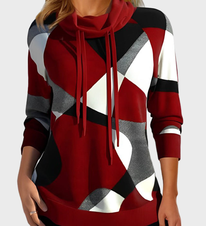 Kootud kõrge kaelusega geomeetrilise mustriga pluus