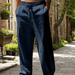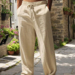 Kerge ja hingava lina valmistatud püksid lasevad nahal hingata. Isegi kui on soe, jäävad nad värskeks ja mugavaks – ideaalsed jalutuskäiguks linnas või väljasõiduks.