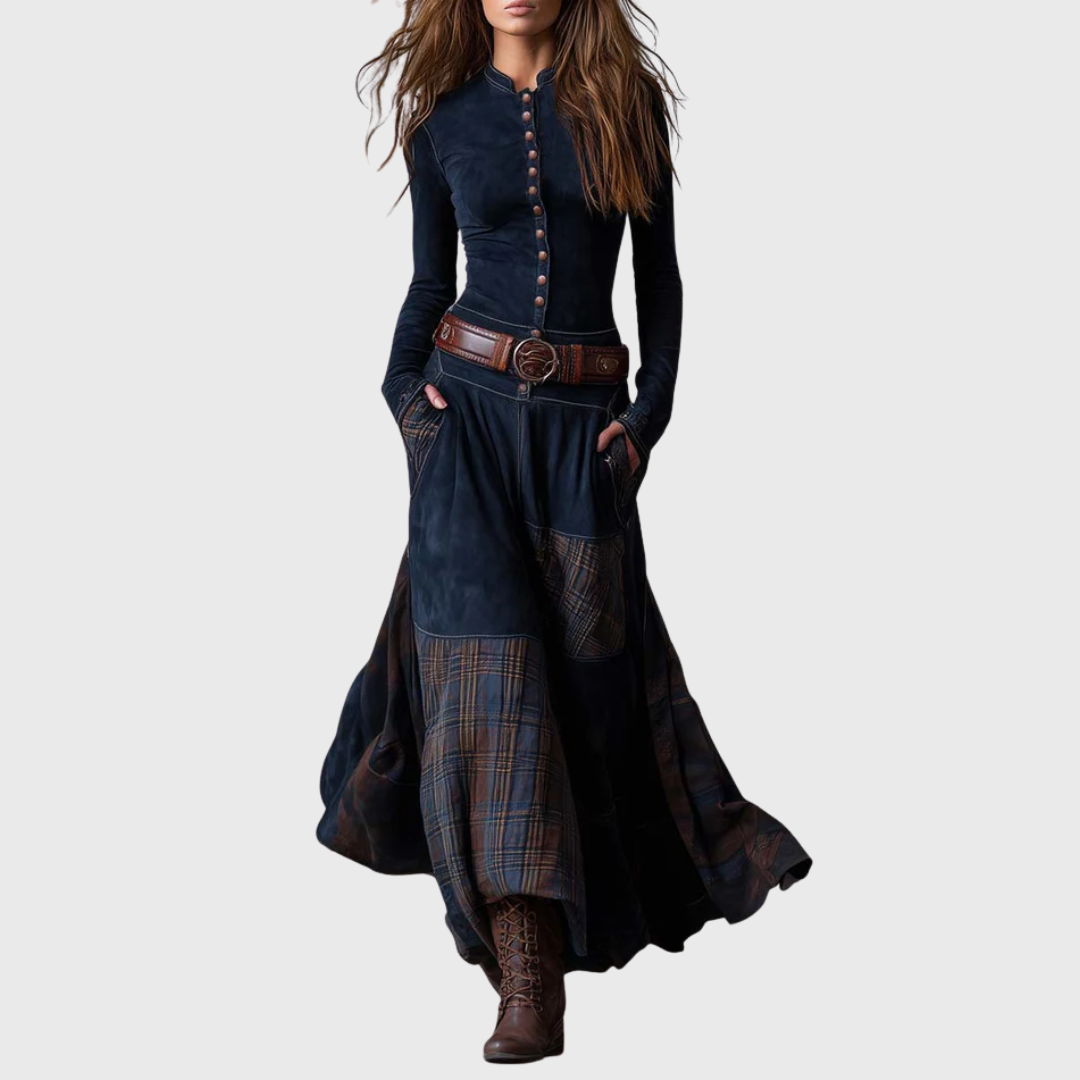 Laura | Pikk ruuduline kleit vööga