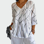 Valge mustade joonte ja täppidega pluus on ideaalne lihtsuse ja elegantsi kombinatsioon. V-kujuline-Kaelus lisab naiselikkust, samas kui mugav kangas sobib suurepäraselt nii igapäevaseks kandmiseks kui ka šikimaks välimuseks.