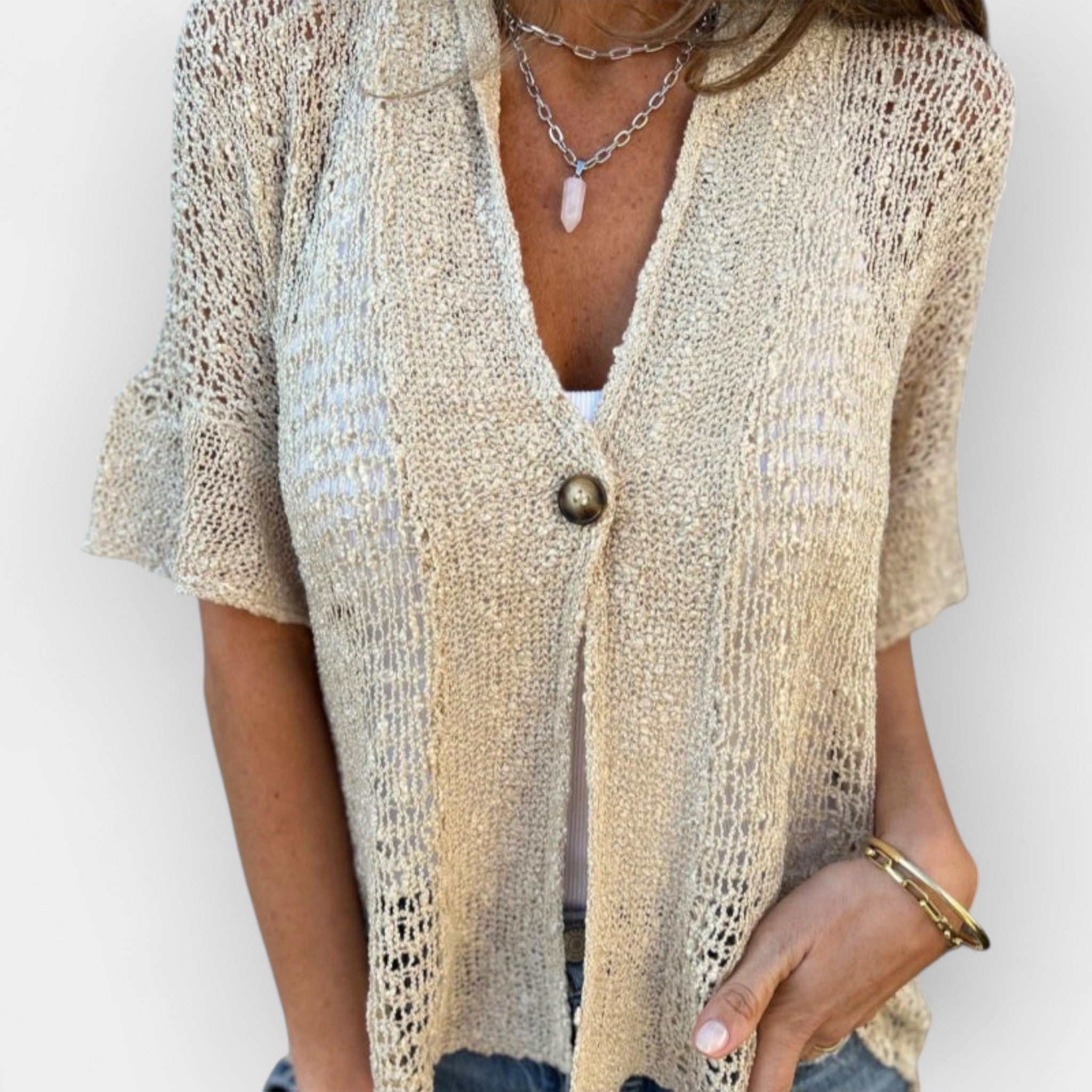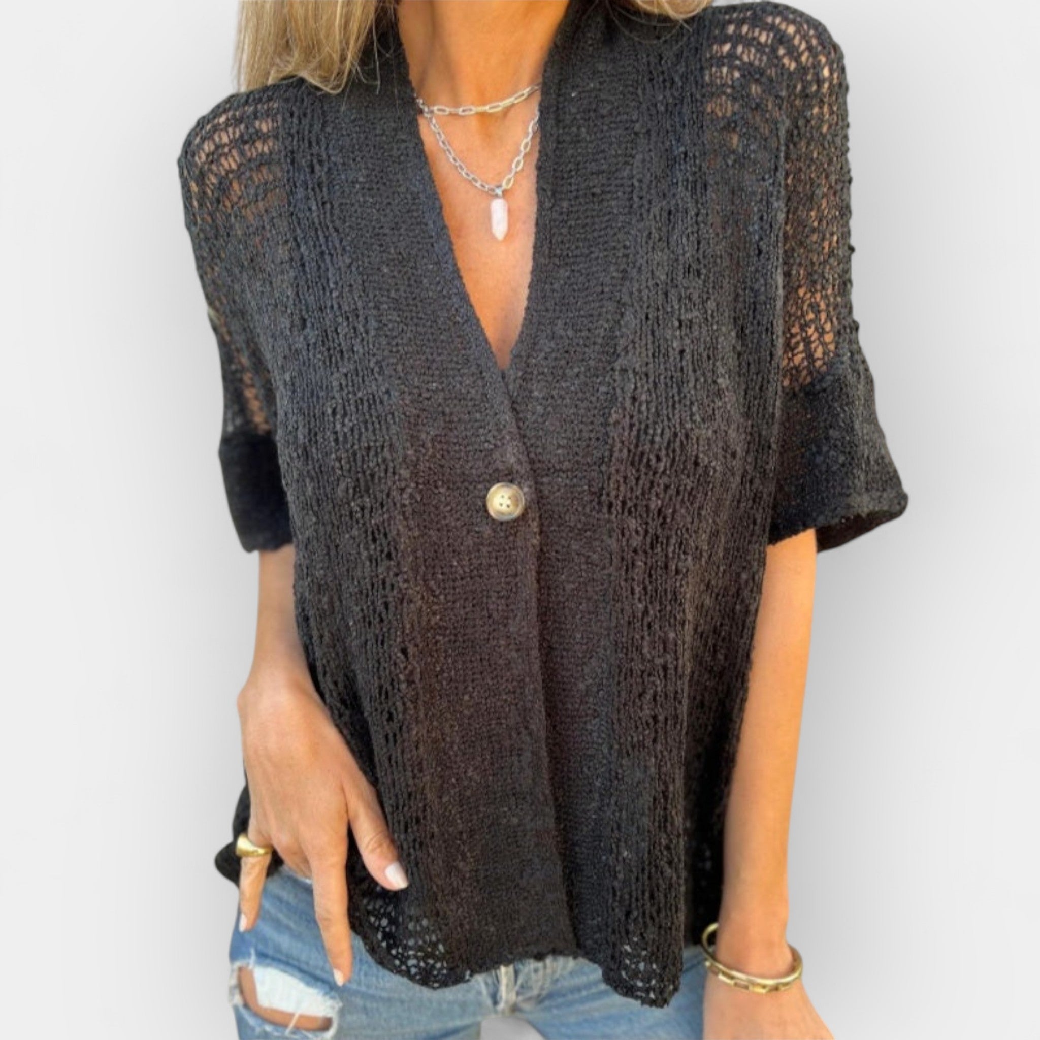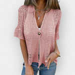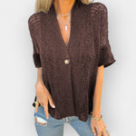Kootud topp V-kaelusega ja nööbiga