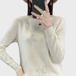 Kootud kõrge kaelusega särk liblikamustriga, mis õhkub elegantsi ja naiselikkust. Pehme tekstuur pakub mugavust ja soojust, samas kui vaba lõiget on ideaalne nii igapäevaseks kandmiseks kui ka erilisteks sündmusteks. Ese, mis annab igale välimusele erilise puudutuse.